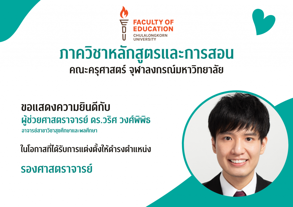ขอแสดงความยินดีกับคณาจารย์ ที่ได้รับแต่งตั้งให้ดำรงตำแหน่งทางวิชาการสูงขึ้น Submitted by CUEDU_CURR on 26 December 2025 ภาควิชาหลักสูตรและการสอน ขอแสดงความยินดีกับคณาจารย์ที่ได้รับแต่งตั้งให้ดำรงตำแหน่งสูงขึ้น "รองศาสตราจารย์"