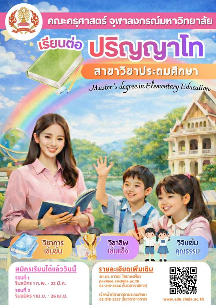 หรือที่ ภาควิชาหลักสูตรและการสอน โทร 0-2218-2527