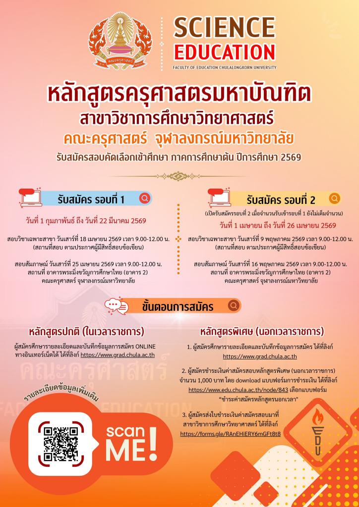 รับสมัครบุคคลเข้าศึกษาต่อในระดับบัณฑิตศึกษา ภาคการศึกษาต้น ปีการศึกษา 2569