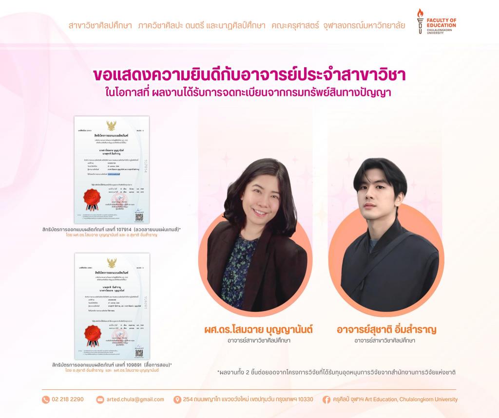 สิทธิบัตรการออกแบบผลิตภัณฑ์ เลขที่ 109891 ชื่อผลงาน สื่อการสอน โดย อ.สุชาติ อิ่มสำราญ และ ผศ.ดร.โสมฉาย บุญญานันต์