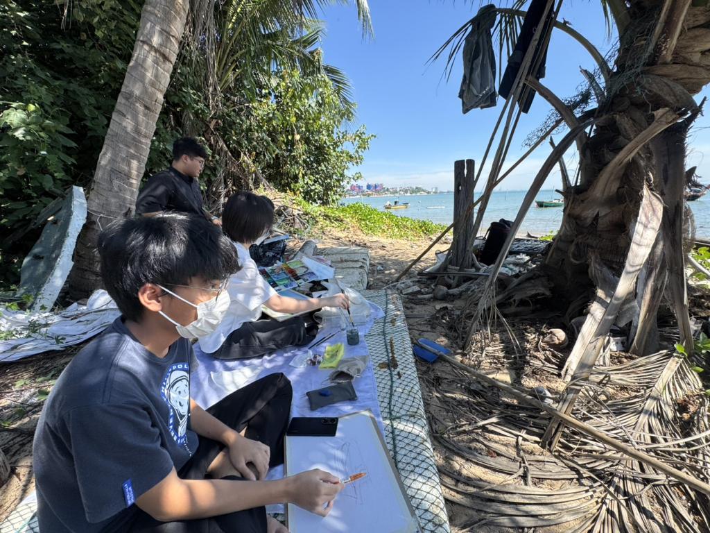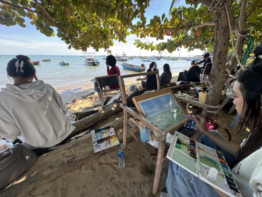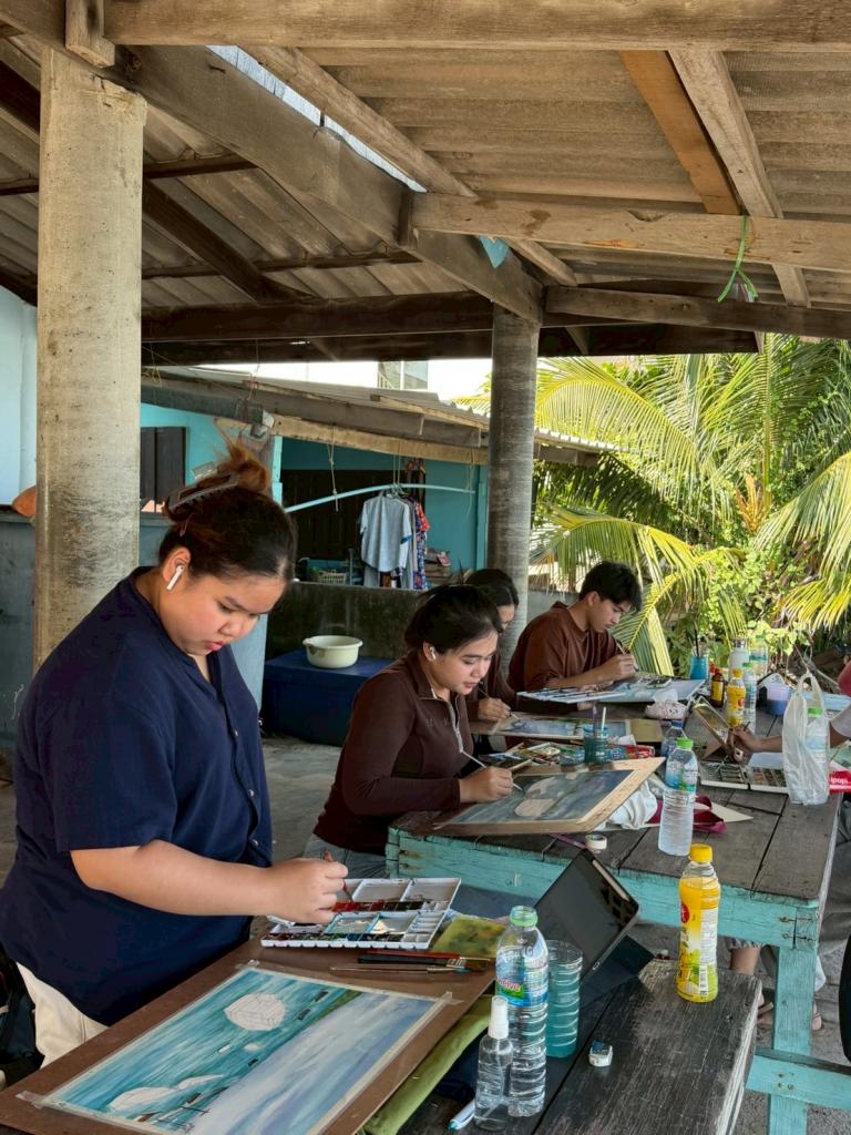 นิสิตสาขาวิชาศิลปศึกษา คณะครุศาสตร์ จุฬาลงกรณ์มหาวิทยาลัย ชั้นปีที่ 2 ร่วมในโครงการฝึกปฏิบัติการวาดภาพสีน้ำ ณ หาดพลา จ.ระยอง