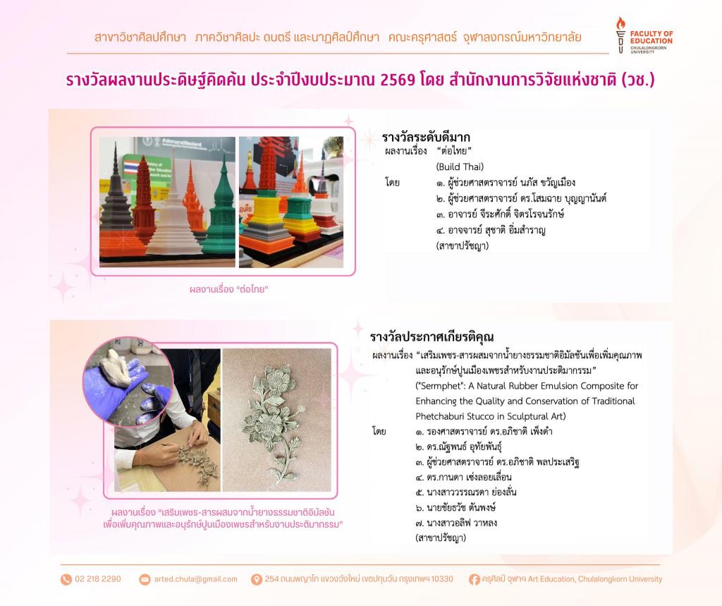 งานนวัตกรรม 2 ผลงานของอาจารย์สาขาวิชาศิลปศึกษา คณะครุศาสตร์ จุฬาลงกรณ์มหาวิทยาลัยได้มีส่วนร่วมกับหน่วยงานภายนอกคณะฯ