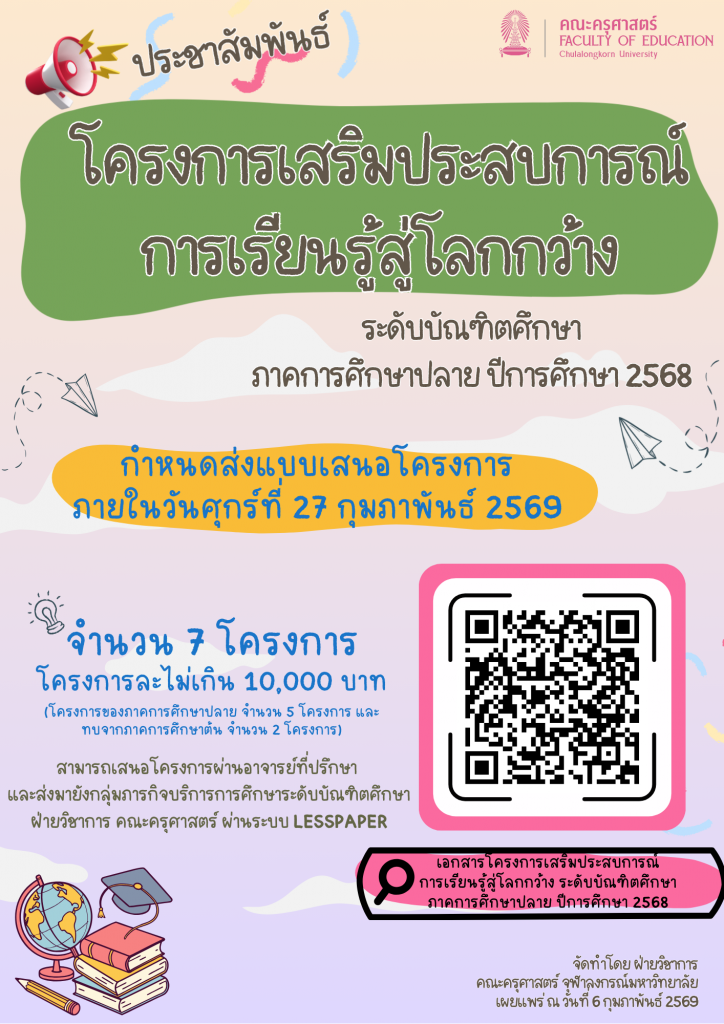 ✨✨การเสนอโครงการเสริมประสบการณ์การเรียนรู้สู่โลกกว้าง ระดับบัณฑิตศึกษา ภาคการศึกษาปลาย ปีการศึกษา 2568✨✨