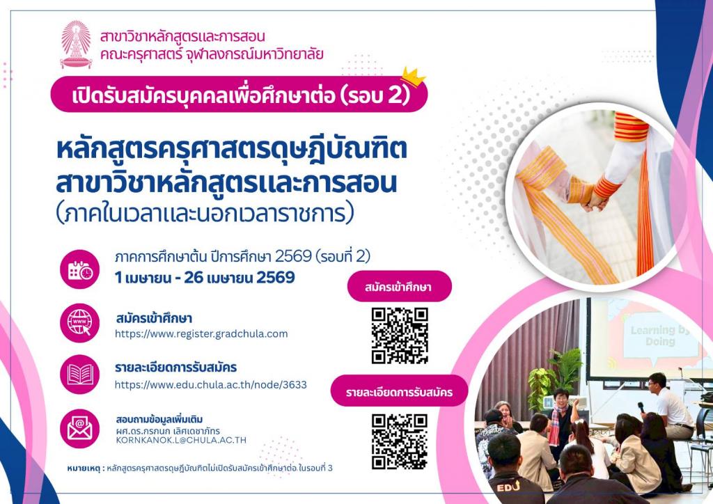 หรือที่ ภาควิชาหลักสูตรและการสอน โทร 0-2218-2529
